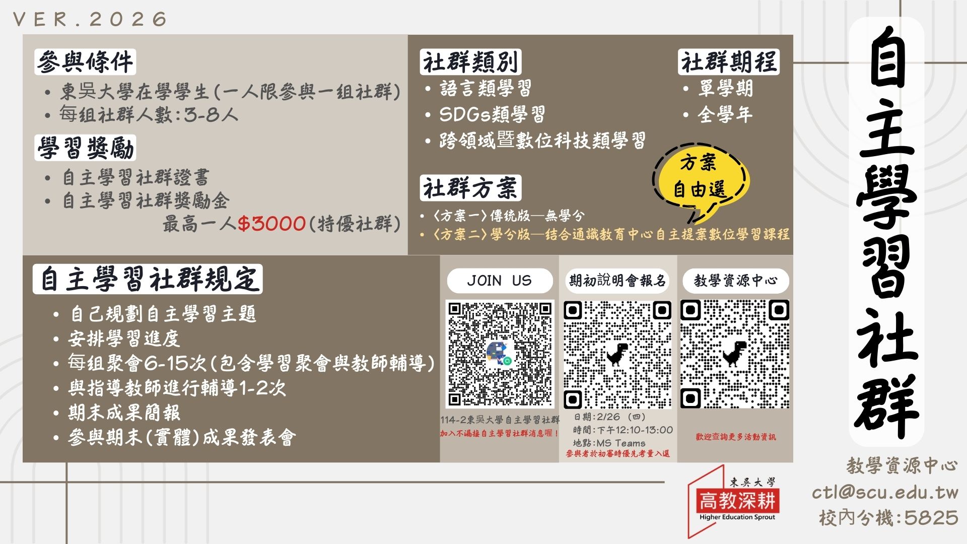 - 📚✨ [教學資源中心] 114-2 學生自主學習社群再進化(拿獎勵搶學分),即日起報名至3/8(日)✨📚