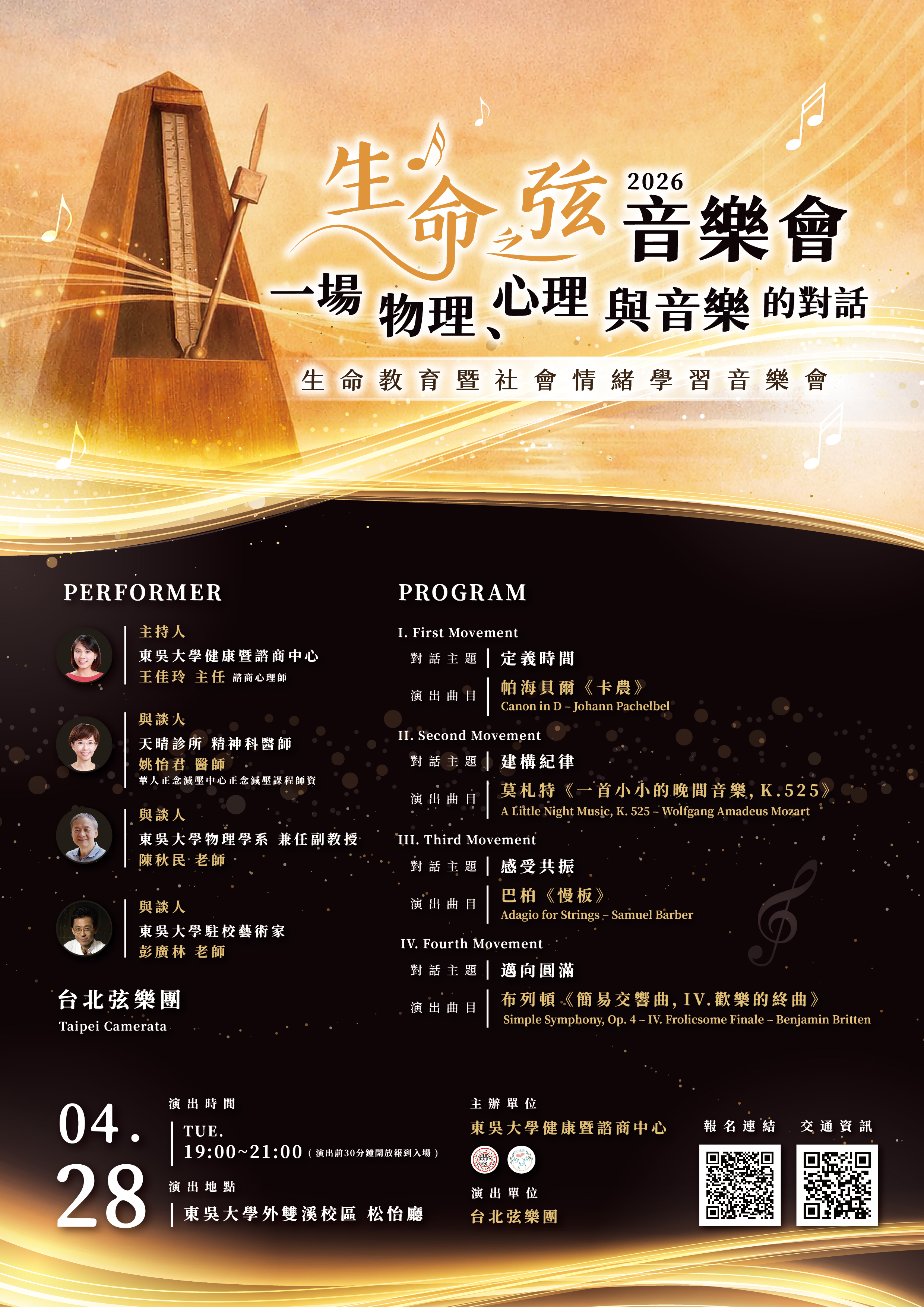 【健康暨諮商中心】《2026 生命之弦音樂會》,歡迎踴躍報名參加!