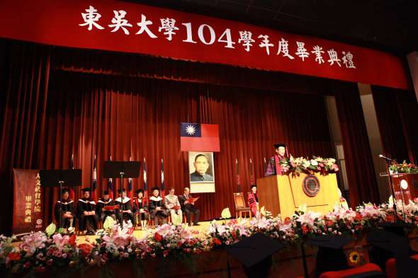 典禮中,校長潘維大除恭賀畢業生完成人生重要階段,也勉勵畢業生未來在面對無數的選擇與挑戰時,請帶著東吳校訓「養天地正氣 法古今完人」及東吳紅黑校色代表的熱誠、堅毅精神迎向未來,期盼畢業生運用智慧判斷做出最佳選擇。董事長王紹堉以中國春秋時期的思想家老子的學生關尹子名言勉勵學生「利害心愈明,則親不睦;賢愚心愈明,則友不交;是非心愈明,則事不成;好惡心愈明,則物不契;是以聖人渾之。」校友總會理事長劉吉人則鼓勵畢業生,以勇敢的心迎向未來,也期盼東吳人畢業後,能持續與母校保持聯繫。