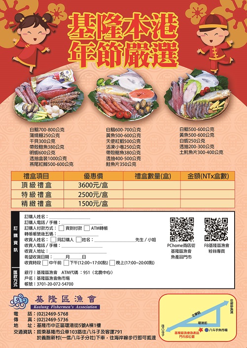 基隆區漁會提供師生優質漁產品年節禮盒訂購事宜,詳如附件。