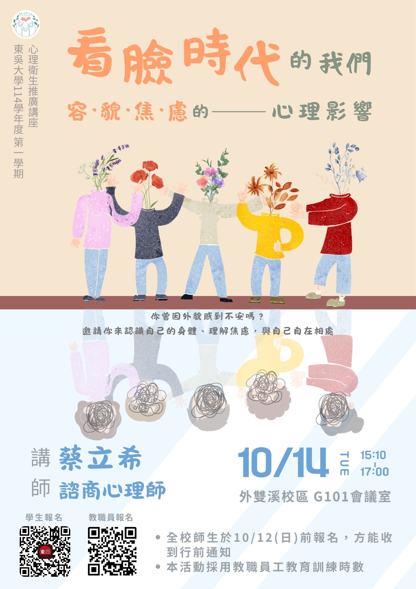 - 【健康暨諮商中心】「看臉時代的我們-容貌焦慮的心理影響」心理衛生推廣講座